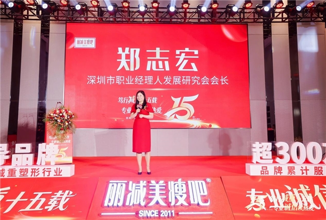 行业伙伴齐聚庆典现场,共叙发展,展望未来。深圳市软件行业协会副秘书长于维国、容大生物董事长韩敏、深圳职业经理人发展研究会会长郑志宏、丽减美瘦吧组织成长教练张霞老师先后登台致辞。他们分别从行业趋势、技术赋能、品牌战略与组织发展等多个维度,对丽减美瘦吧十五年取得的成果给予了充分肯定,并表达了进一步深化合作、共同推动健康减重行业高质量发展的美好愿景。